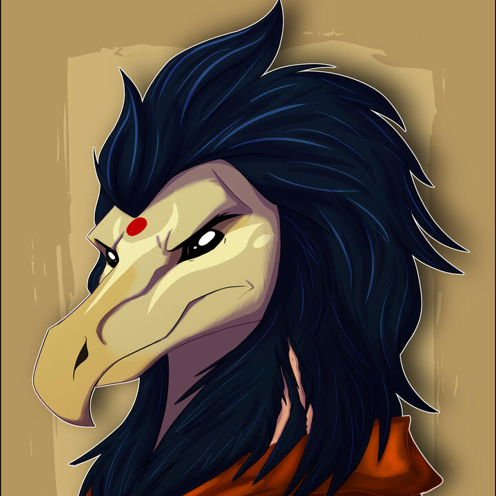 Distinguishing trait(s): Pointed ears, venomous and searing bite, a radiated aural warmth and power ; once pristine feathers will often ignite at the seams ; partial bird-like limbs swathed in the cloak of his wings.Apparel: Shawls and sheers of vibrant hue, strung about the waist and shoulders, left pooling at the talons of the feet ; cloth of bright, pristine ivory, bronze, and white underneath.Accessories: Soll is very rarely seen without even a grand touch of emblazoned jewelry or stone to his person. Bracers, gauntlets, torques, earrings, ringsโฆ These would all be common for the Sun to be seen wearing.