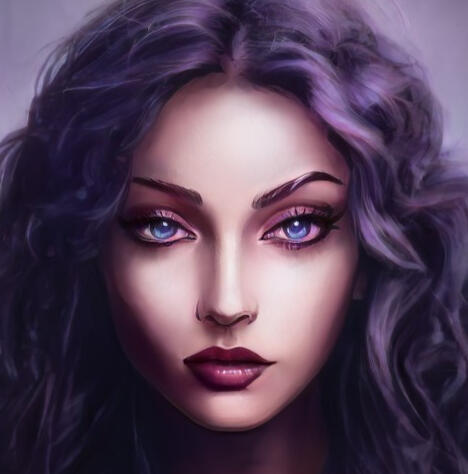 Height: 6' 2''. || 188 cm.Build: Lithe and regal ; gentle-blooming curves and slopes, soft and illuminated features ; a demure posture and stance to suggest steadfastness, temperance, both fraught with mystic virtue.Eyes: Wide, curious and intelligent ; a lighter shade of blue-purple which is known to blaze and darken when scorned or irate.Hair: Long tangles of black-violet coils ; often braided and pulled upright whilst working, left alone in dark spools over her shoulders and backside when at leisure.Complexion: Godhood imbrues one with a fine radiance ; divine blood shines different depending on your host. For Hekate, it comes across as ghostly, moon-like almost, a subtle silvery gleam blooming throughout her naturally deeper-hued complexion.Markings: Like sewn threads of celestial ink, Hekate has sigils from firstborn spells spun across her skin ; some were self-made, others were forcibly taken from others.